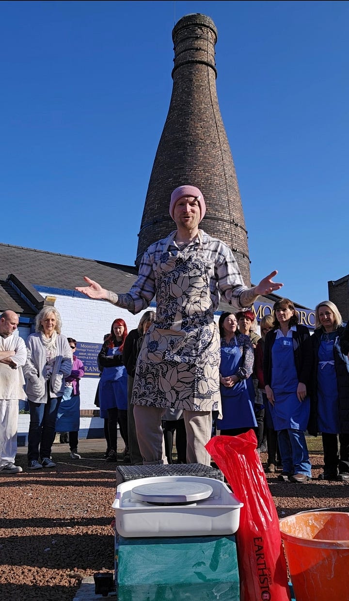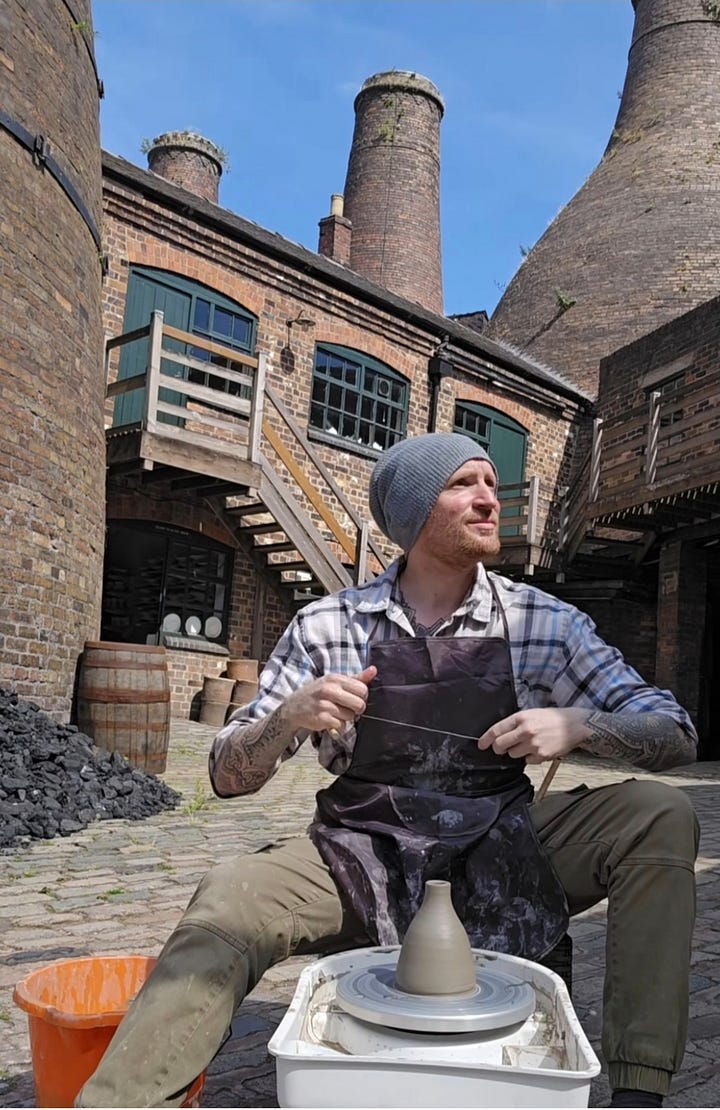 Woah! This ace novice potter who posts under @bottlekilnpottery on Insta just completed a challenge of hand-throwing miniature pottery replicas outside of the 47 remaining bottle kilns in Stoke-on-Trent, with the last one thrown outside Moorcroft last week. He told the Knot, “As a local guy I’ve always been proud of my potteries heritage. My parents and family are from here, and I’ve always wanted to try pottery. I took a class about 14 months ago and decided to mix my love of the outdoors with throwing. What better than in front of the remaining 47 kilns in the city to highlight them to people who aren’t from the area and what a fabulous place this is?” Thomas says the response has been amazing to his quest. “Will Moorcroft couldn’t have been kinder and reminded me I am the first potter to hand throw something on the site since the early 1900s!” Some of followers have become friends, he added. The bottle bud vases that Thomas threw on his wheel outside the kilns will be available to purchase on 22/03 at Gladstone’s Ceramic Makers Market. Snap them up while you can!