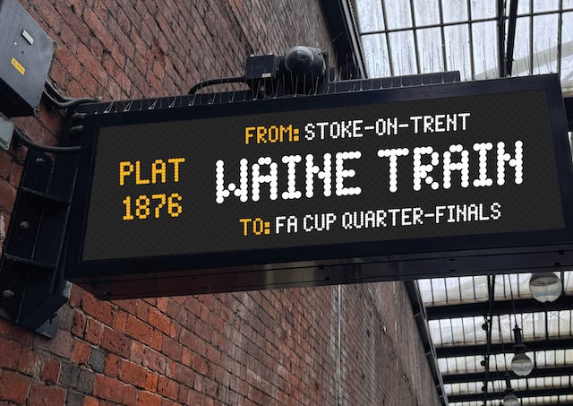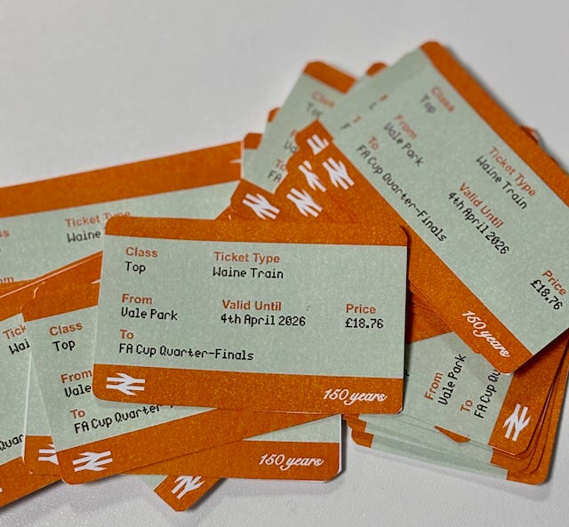 ⚽️ Port Vale Celebrate Sensational FA Cup Win. Even Stoke fans have been forced to admit that the Valiant’s win over Premier League team Sunderland on 08/03, thanks to a goal in the 28th minute from Newcastle fan Ben Waine, was inspired. The club has had fun with some “Waine Train” signage, with the location stated as “FA Cup Quarter Finals.” Tickets were issued, too. They play Chelsea on 04/04 at 17.15 at Stamford Bridge – catch it on BBC One.