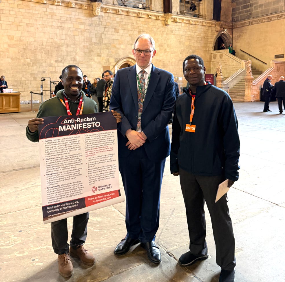 💪 Students Take Anti-racism Manifesto to Westminster. University of Staffordshire and Keele University students recently visited Westminster to present an anti-racism manifesto to Members of Parliament, including local MP Gareth Snell (pictured). Originally developed by BSc (Hons) Health and Social Care students at the University of Staffordshire, the manifesto shares solution-focused responses to challenge racism within health and social care settings. In addition to Gareth Snell, the manifesto is being supported by Staffordshire Moorlands MP Karen Bradley, who highlighted it with the Secretary of State for Health, Kerin Smyth MP, and has given suggestions to move it forward.