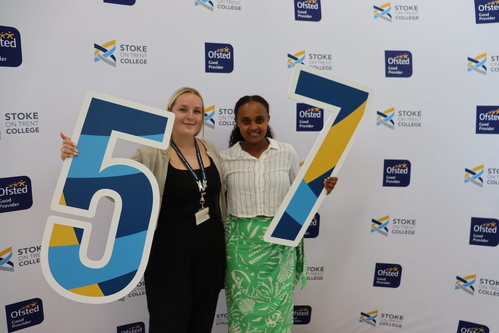More than 1,300 GCSE resit students from Stoke-on-Trent College received their results last week and are now forging career pathways. One student, Mekdes Mideska, who achieved outstanding grades is Health and Social Care, secured a Grade 7 in English and Grade 5 in Maths. Enrolment for the 2024/25 academic year at Stoke on Trent College is now underway at both its Burslem and Cauldon campuses. More information on opening times here. Well done to all who recently sat or re-sat their GCSE’s!
