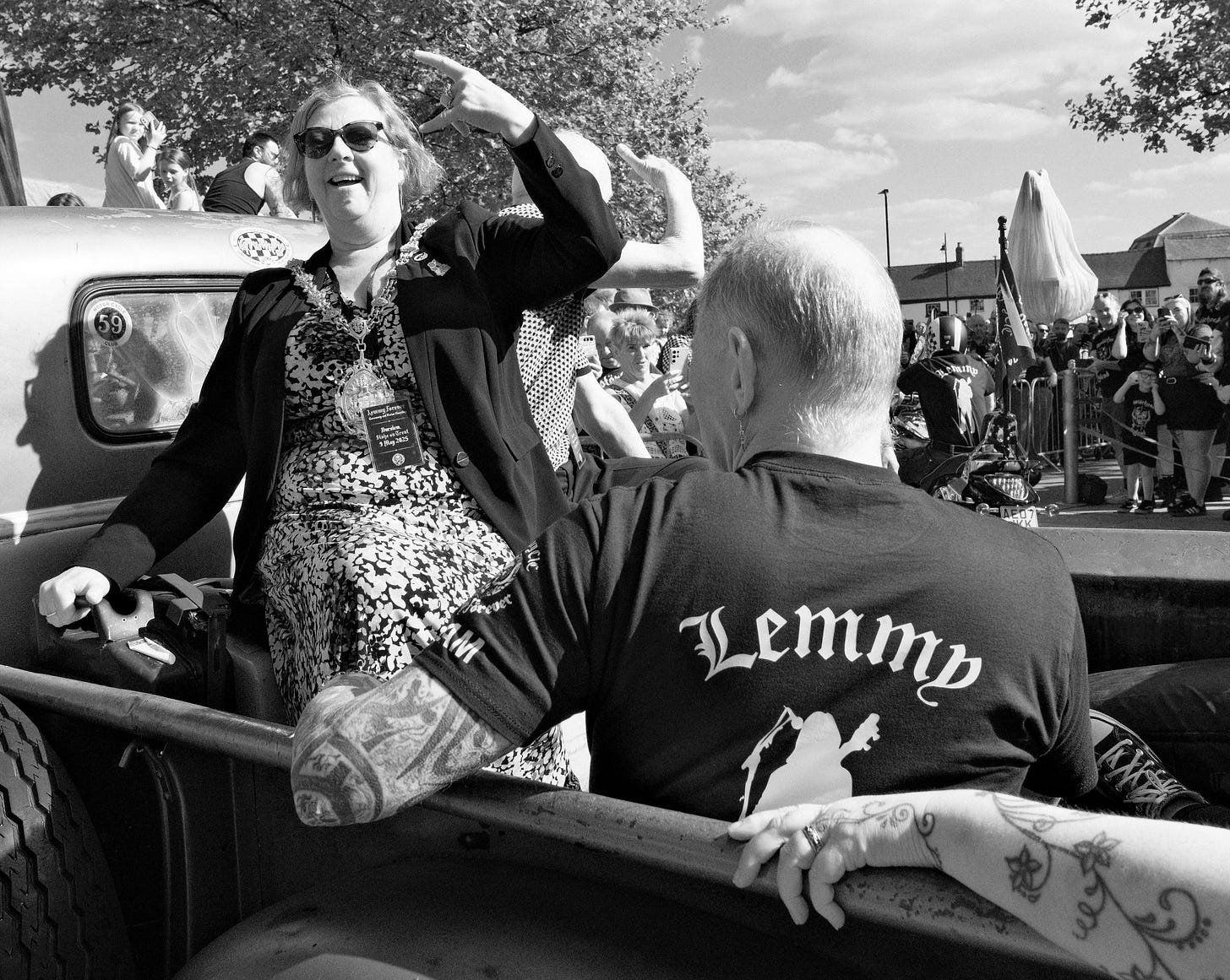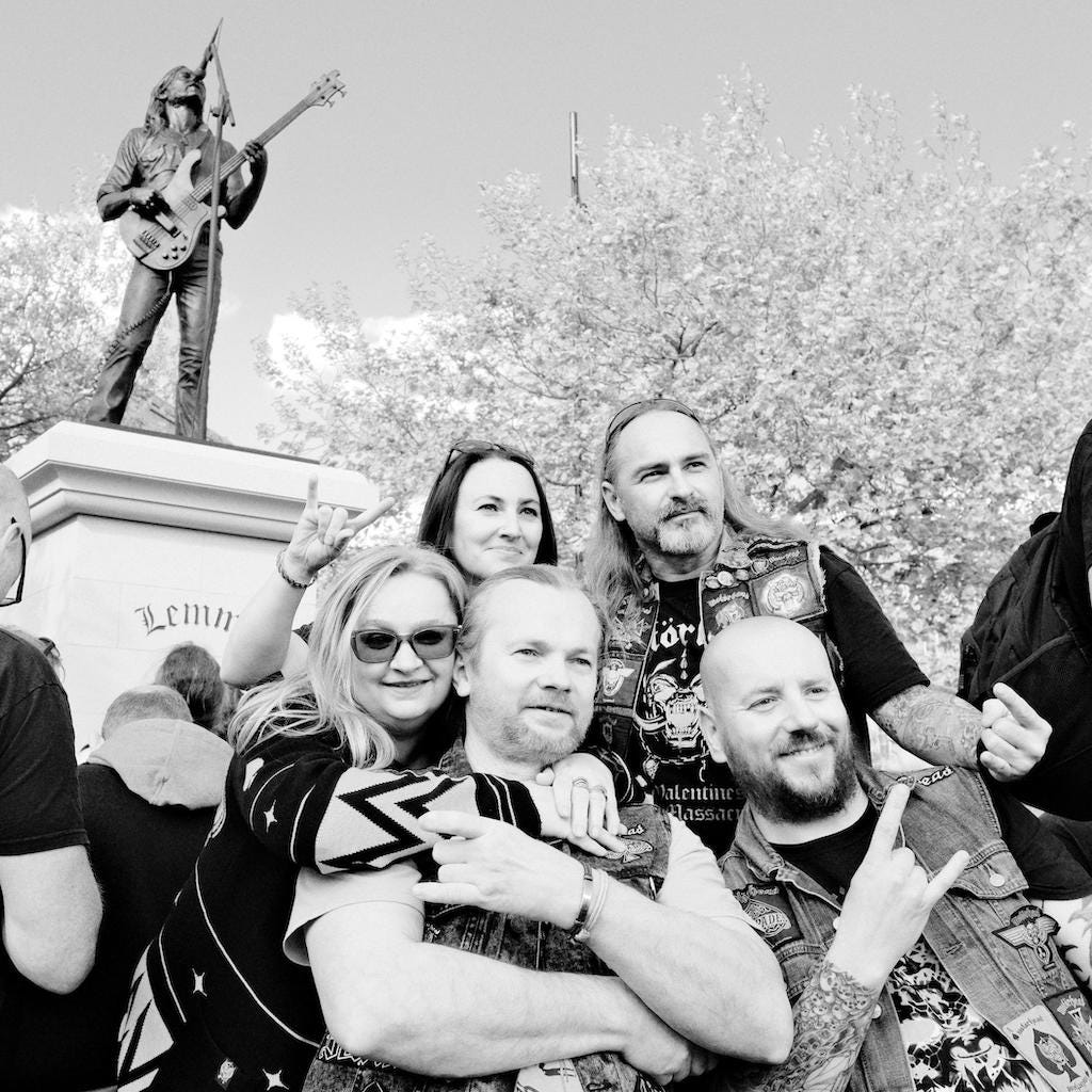 It’s true that the future is changing so scarily fast that huge numbers of city dwellers retreat to their superfast broadband and ready meal holes for security as soon as they finish work, scurrying indoors before the sun’s gone down these days. But in 12 short weeks since the Lemmy hometown statue was unveiled to more than 3,000 people on a Friday afternoon, the memorial is rarely alone. Visitors come and pay their tributes and hang around to talk to others daily, travelling from over 25 different countries already recorded in the visitors’ book. The second live event, Encore, on 3 August featured art exhibitions, a vintage car and bike show, four bands playing in the newly nicknamed Lemmy Plaza and live acts performing across five venues in the town all in celebration of their rock n roll son. This all testifies to a resurgence, new confidence and surviving appetite among people to enjoy each other’s company in a safe public space, watched over by a figure who stood for a free independent lifestyle and loved nothing more than good people enjoying good times.